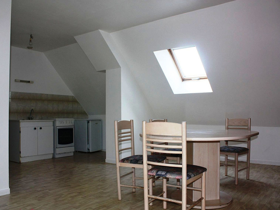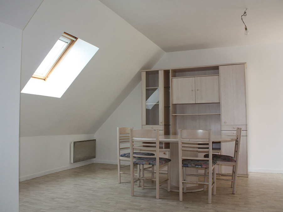 Appartement meublé au 2ème étage d'un immeuble situé en centre ville et comprenant entrée, pièce de vie avec partie cuisine, bureau, salle d'eau avec wc. Les charges comprennent l'électricité et l'entretien des parties communes.