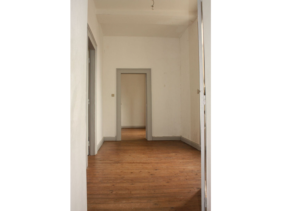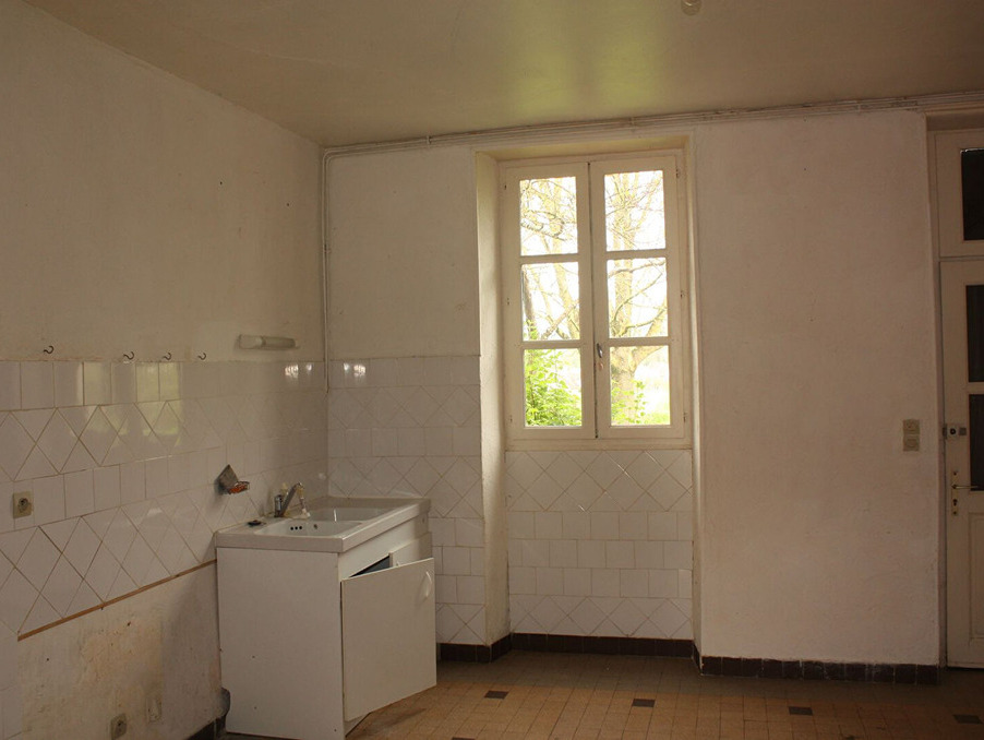 Un bâtiment en pierre à rénover couvert en tuiles plates, composé d'une entrée, une cuisine, un séjour, en demi étage une chambre et un bureau avec grenier au-dessus, à l'étage, deux chambres une salle d'eau, un wc, pour une surface d'environ 130 m² habitable, chauffage central au fuel.