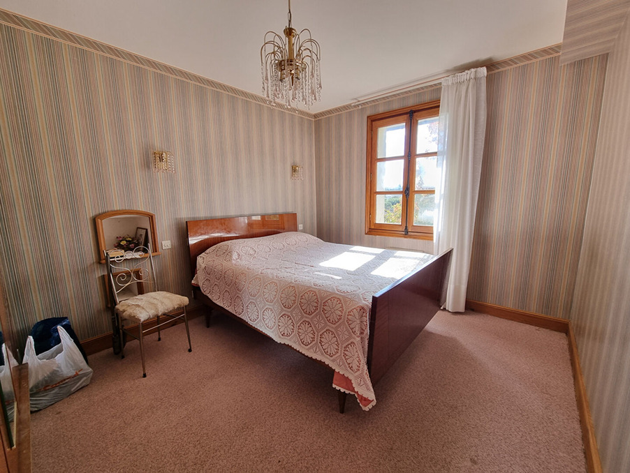 Par un second escalier côté salle à manger, l'étage mène à un palier avec deux chambres, un débarras et un WC.