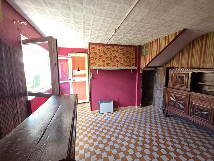 maison de ville à rénover au centre de Bellême comprenant en rez de chaussée, entrée, séjour, cuisine bureau, salle d'eau, wc à l'étage deux chambres, petite terrasse cave partiel, terrain