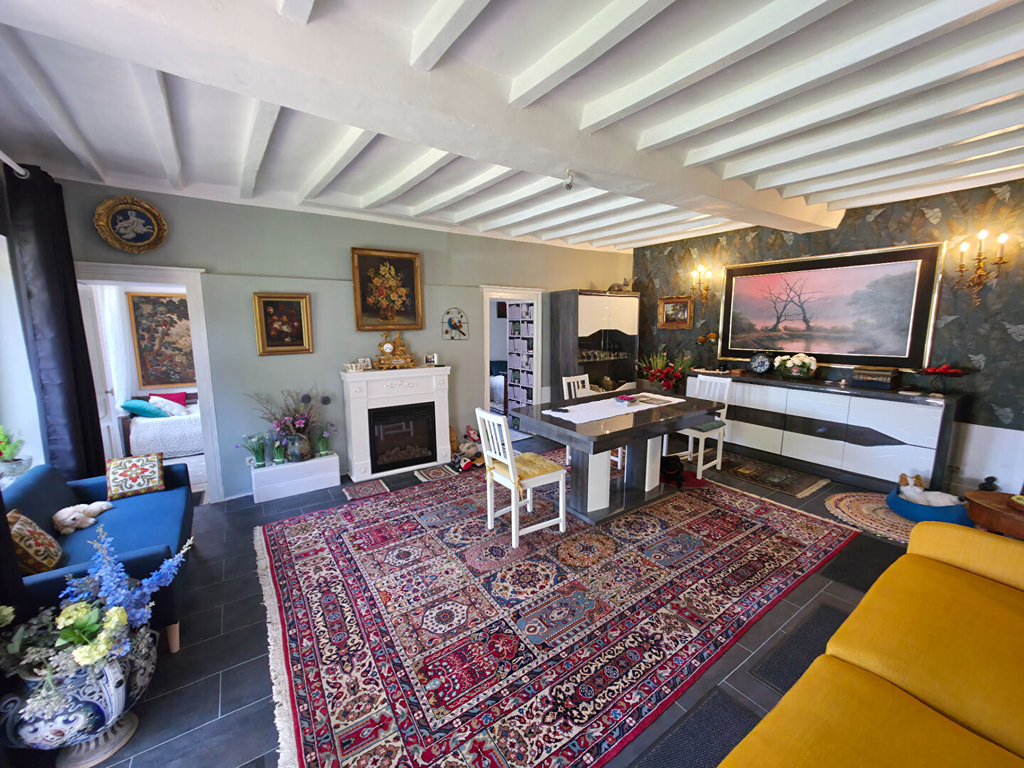 A 5 minutes de Bellême, dans un petit hameau, maison de plain pied comprenant un salon/séjour ouvert sur la cuisine, une chambre spacieuse, deux bureaux, une salle d'eau et un wc . Grenier aménageable en totalité cour et jardin