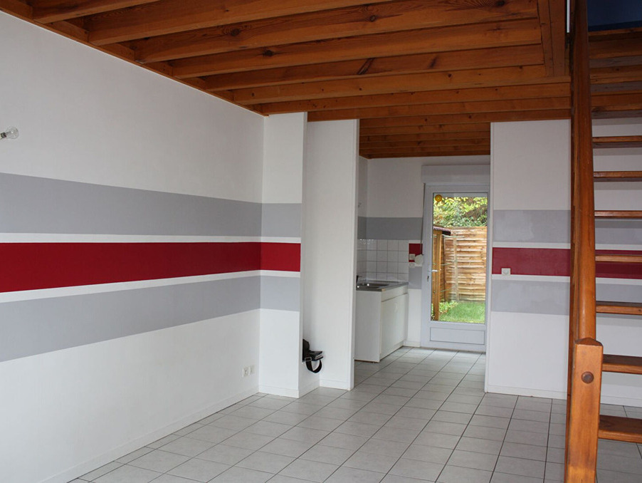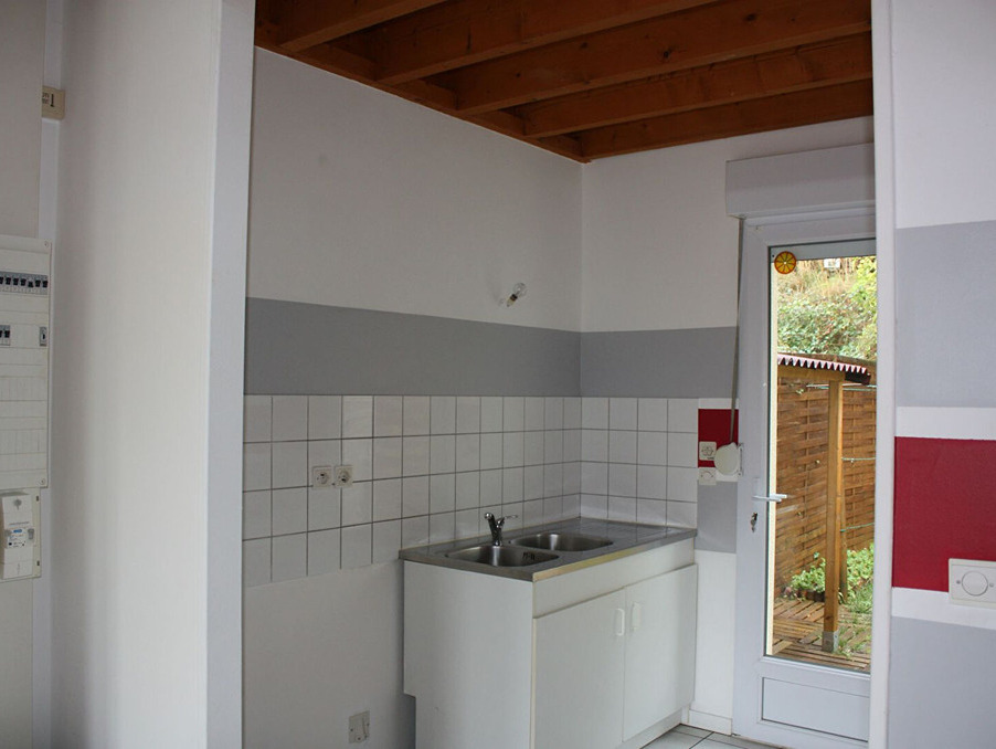 en bourg proche d'Alençon, maison d'habitation comprenant, en rez de chaussée, séjour, cuisine avec rangement à l'étage, chambre en mezzanine salle d'eau et wc jardin libre