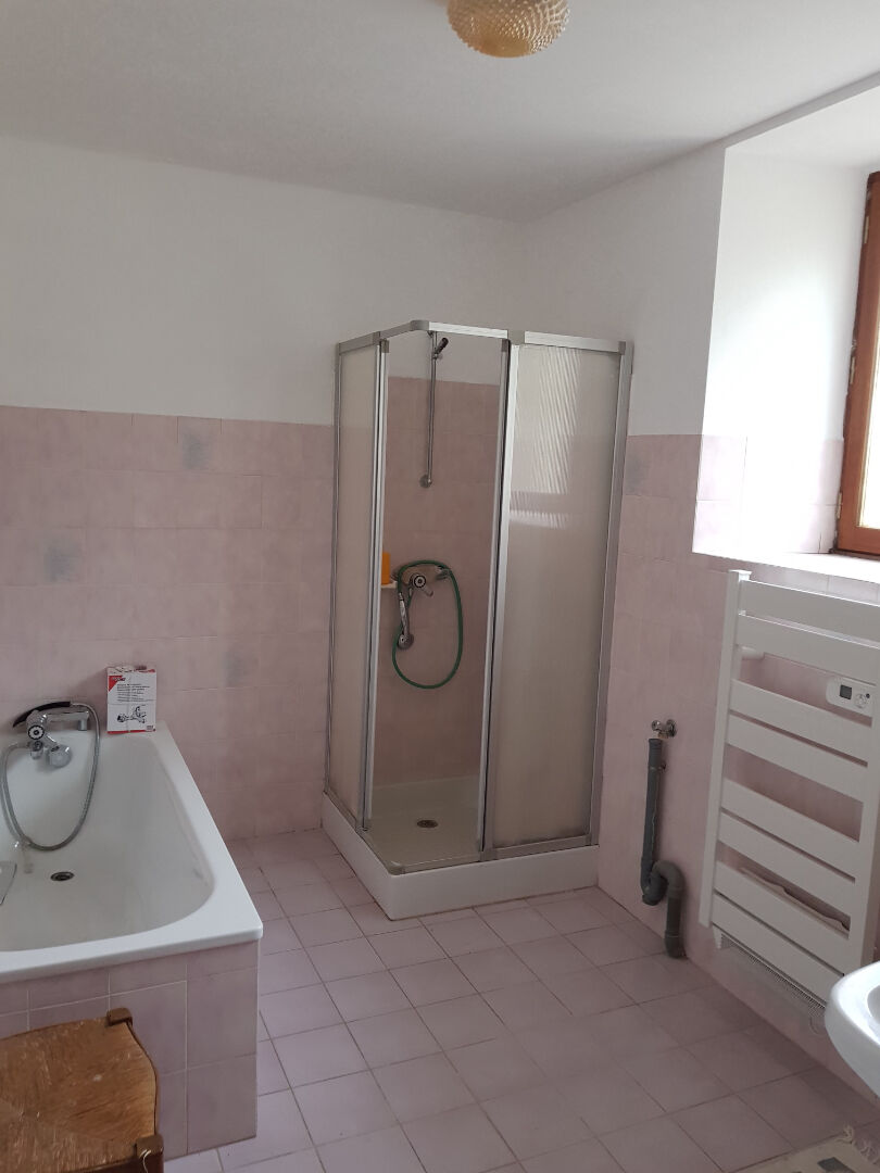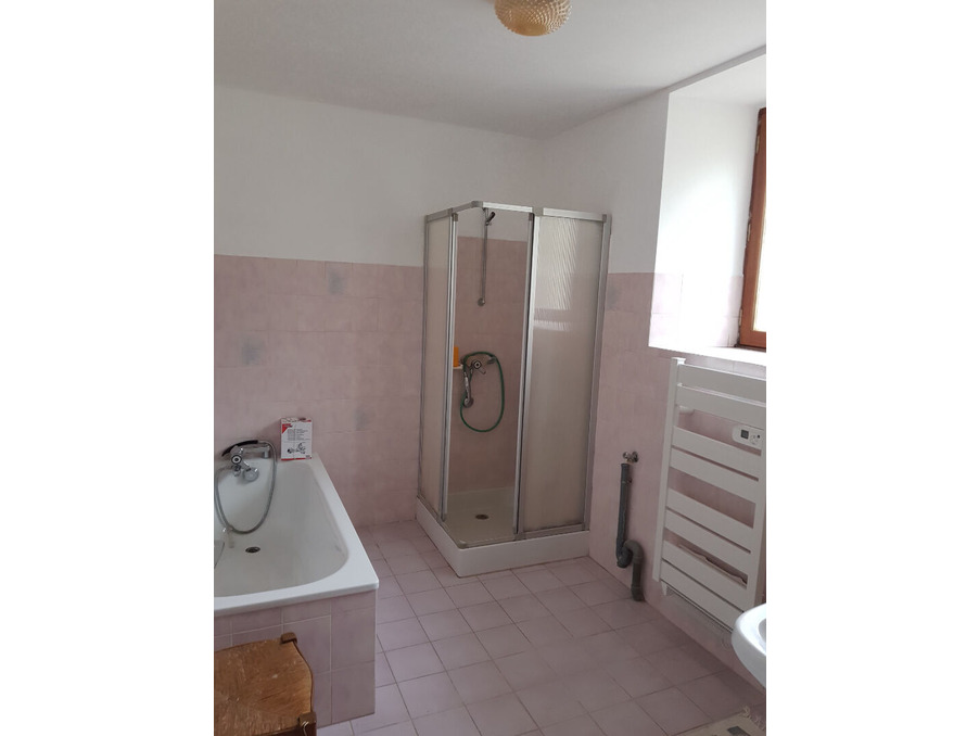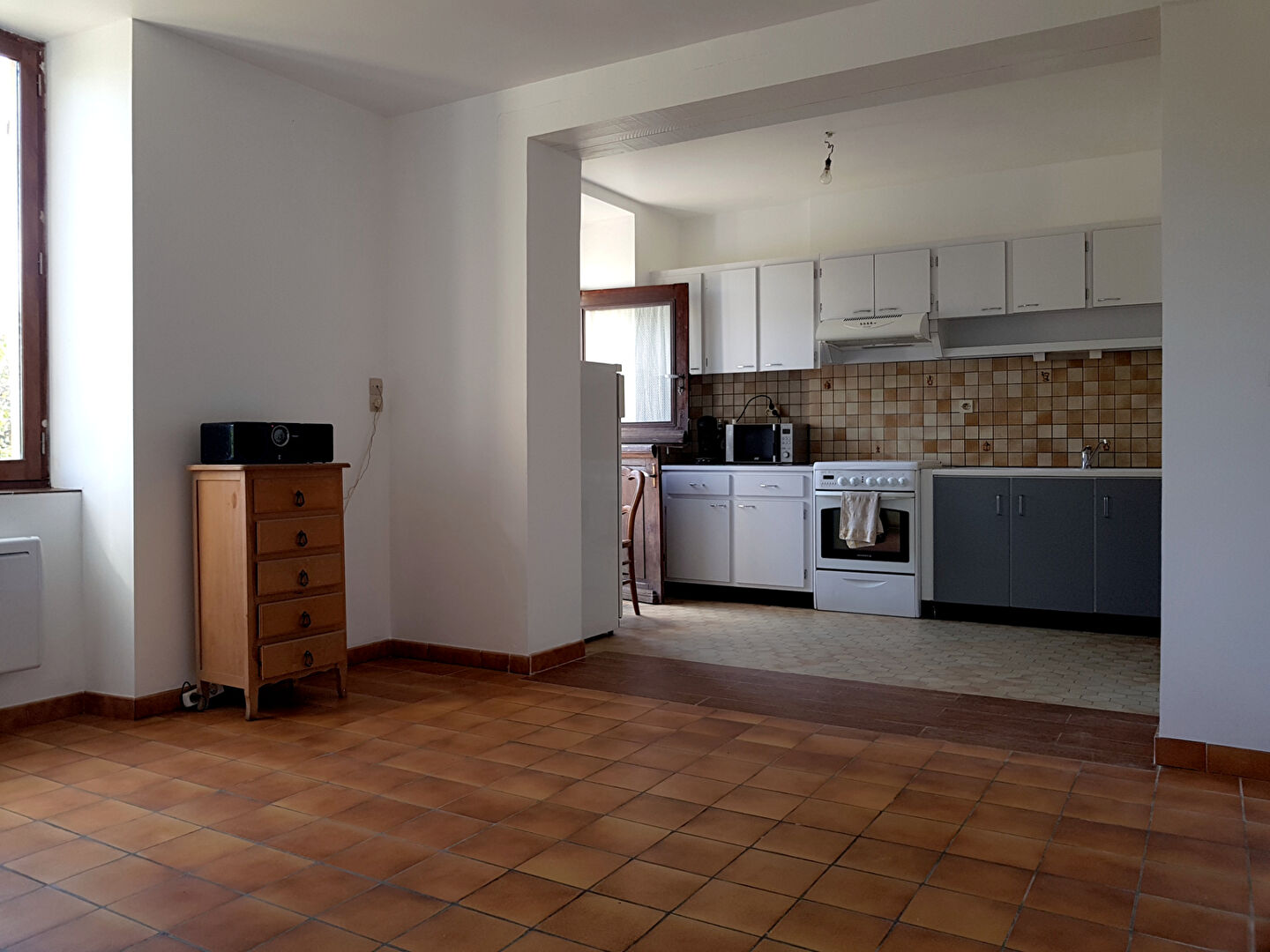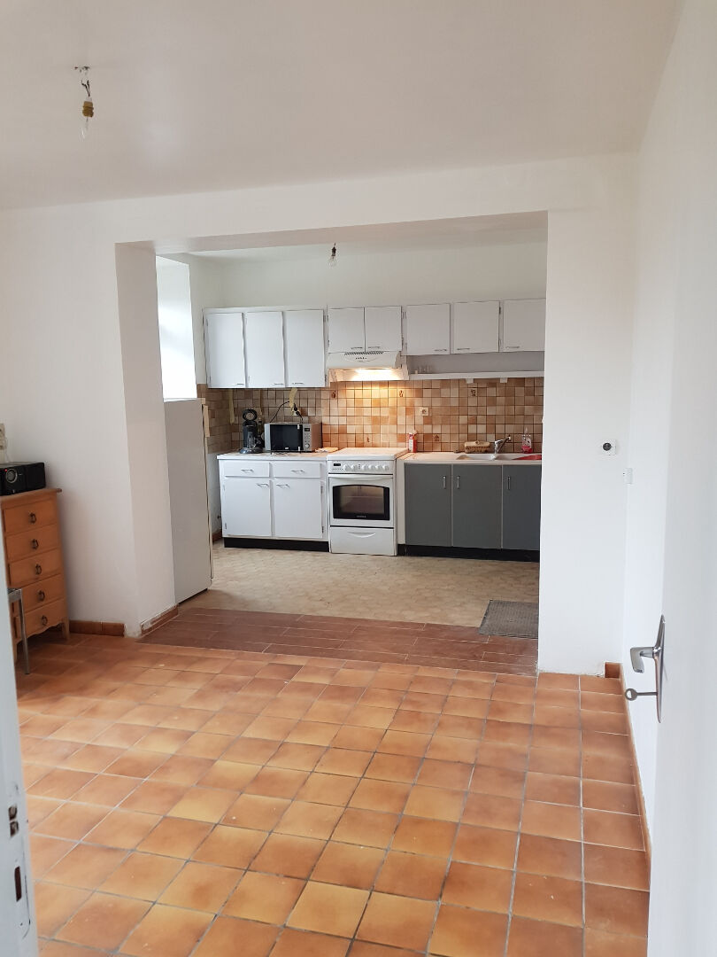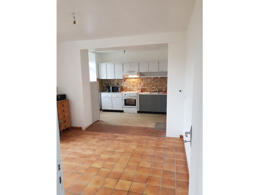 Maison de bourg de plein pied comprenant : un salon ouvert sur cuisine, 2 chambres une grande salle de bain avec douche et baignoire, une arrière cuisine. ,Un terrain de 290 m² avec abris de jardin. ,Chauffage électrique